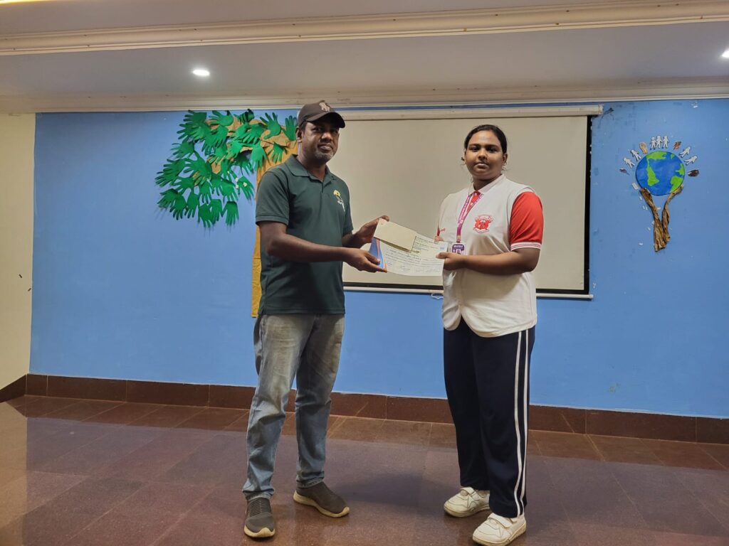 MARY EVANGELINE of class XI secured first prize in “Tamil Essay Writing Competition” organised by the Department of Zoology at Scott Christian College, Nagercoil on 6th October 2025.
